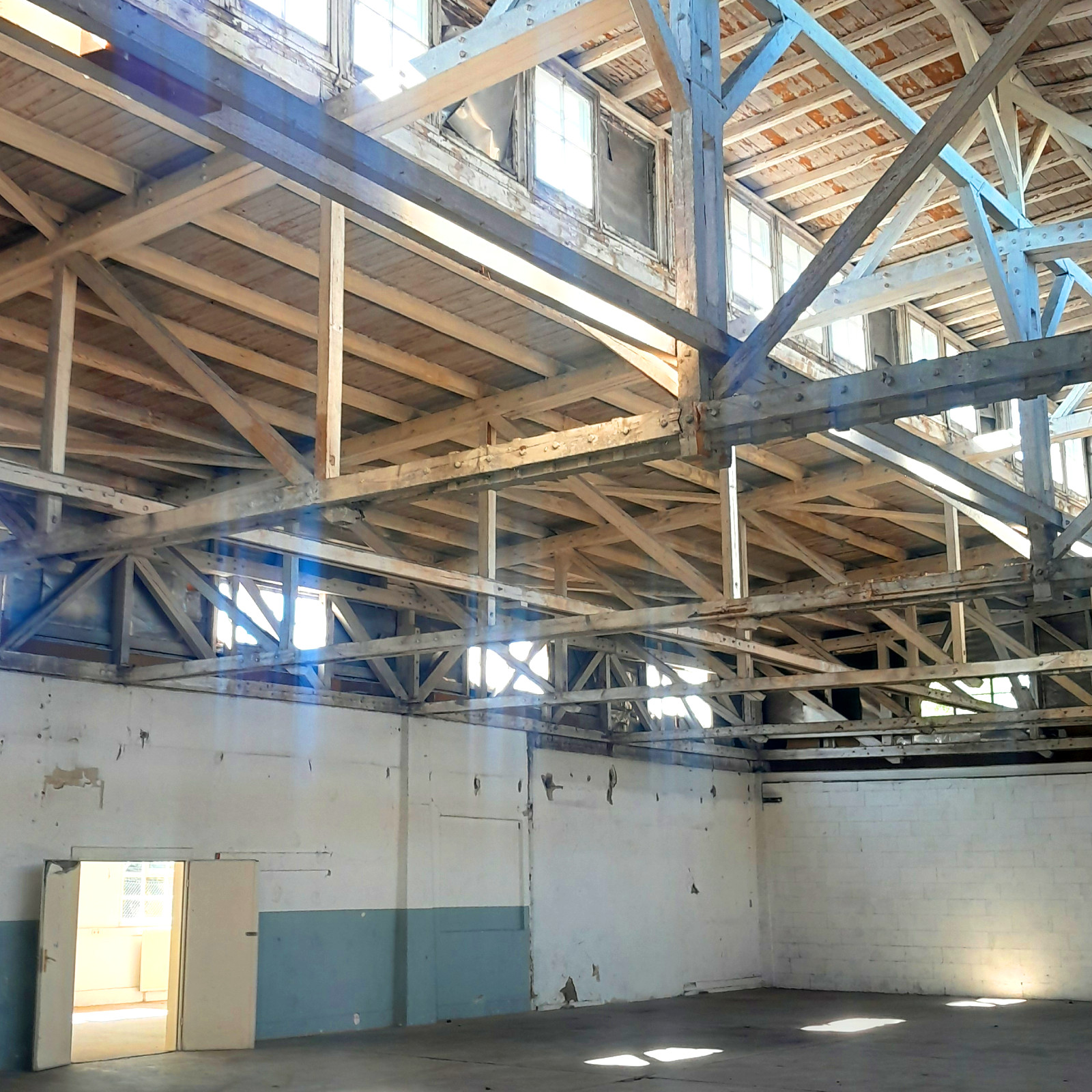 Einbau zusätzlicher Längsaussteifungen in das historische Dachtragwerk des Flugzeughangars
